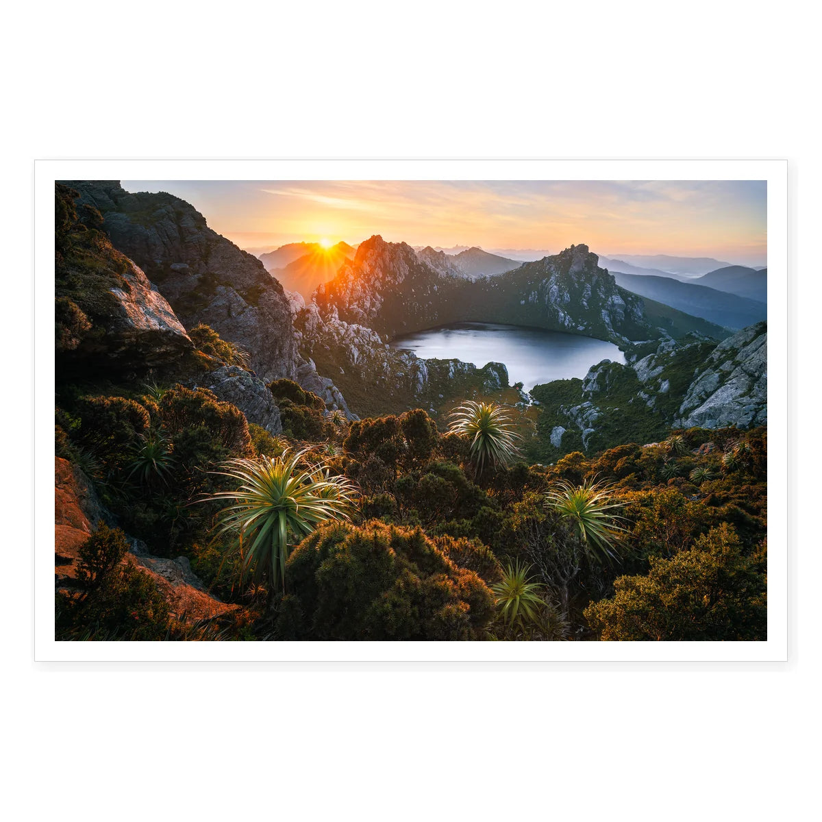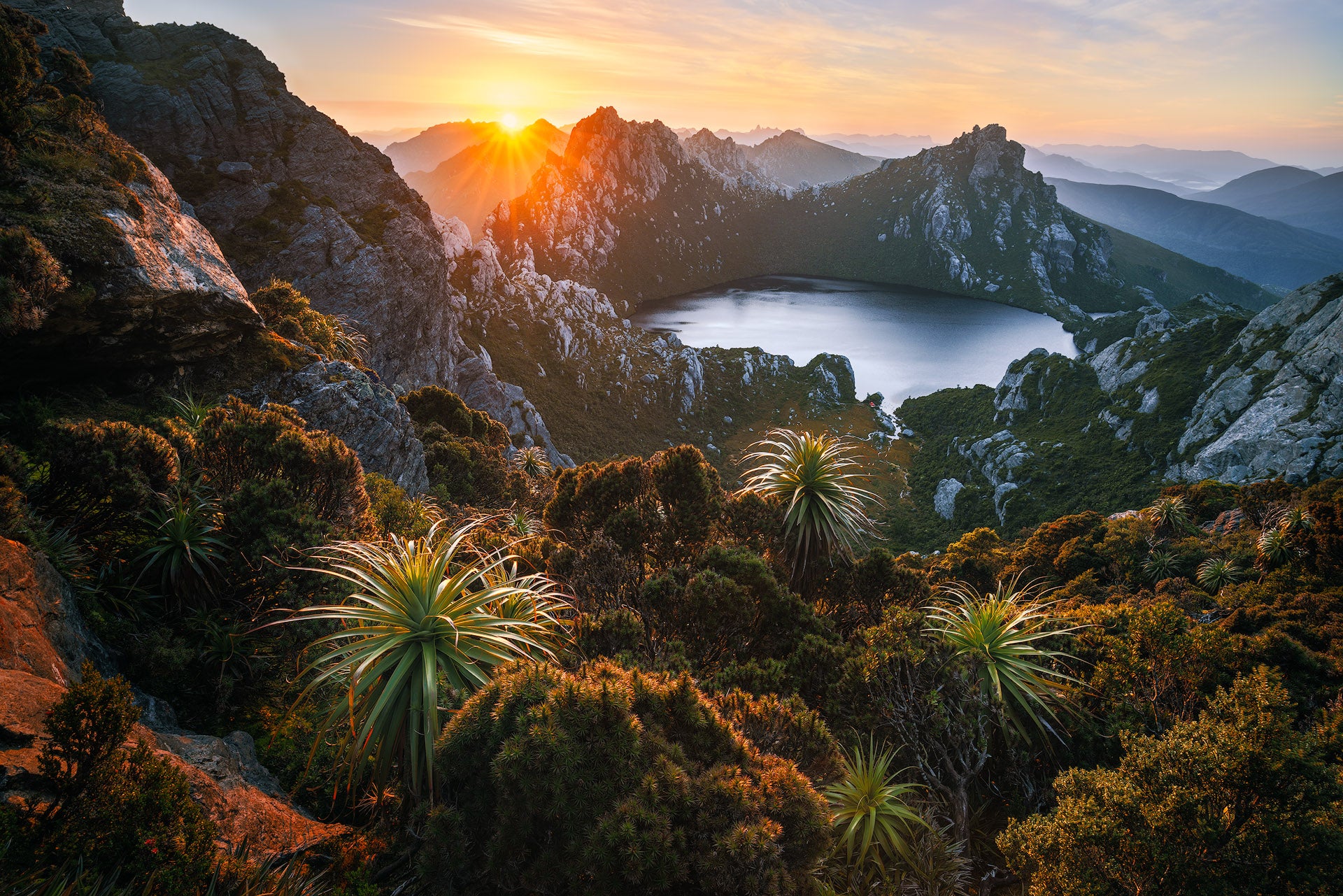 The first rays of the morning pass by Mount Pegasus at Lake Oberon